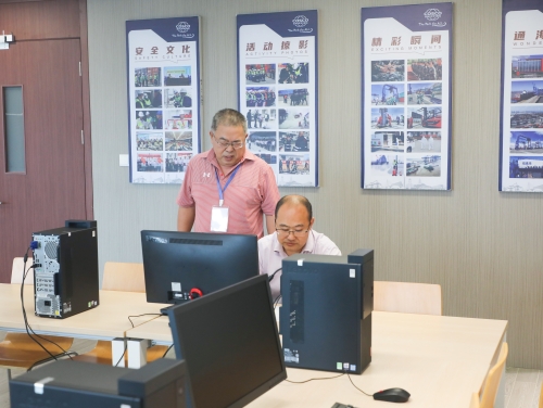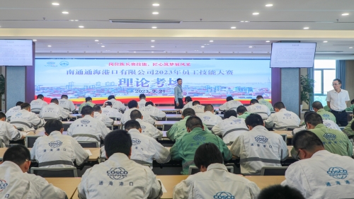 为全面贯彻落实党的二十大精神和习近平新时代中国特色社会主义思想,促进公司知识型、技能型、创新型产业工人队伍,为广大职工搭建技能提升平台,2023年9月21日-26日,南通通海港口有限公司组织开展2023年员工技能大赛,新老同台竞技发掘高素质人才。 技能大赛分理论和实操两个阶段赛程,153名参赛选手将围绕岸桥、场桥、集铲、集卡、叉车、设备机械维修、电气维修、现场安全、中控操作、装卸、信息技术11个工种展开激烈角逐。9月21日上午,理论考试开考,公司领导巡视了理论考试现场,参赛选手们专心致志、心无旁骛,运用平日工作实践积累和掌握的知识认真答题,考场气氛严肃紧张。