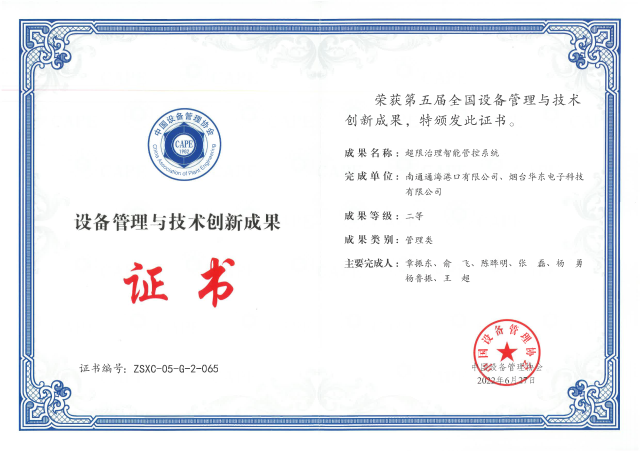 第五届全国设备管理与技术创新成果二等奖
